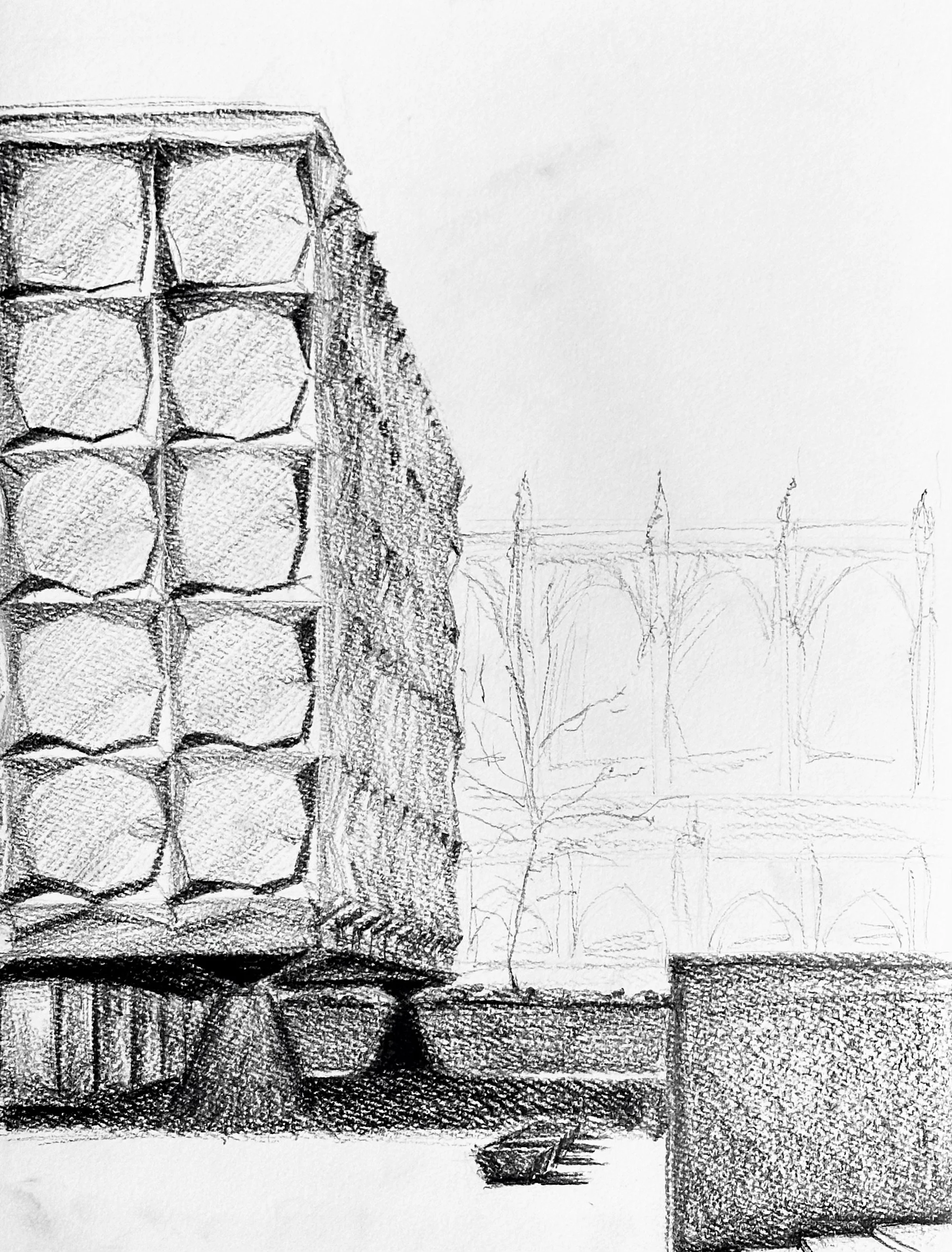 A series of on-site, observational drawings of Beinecke Plaza, Yale.