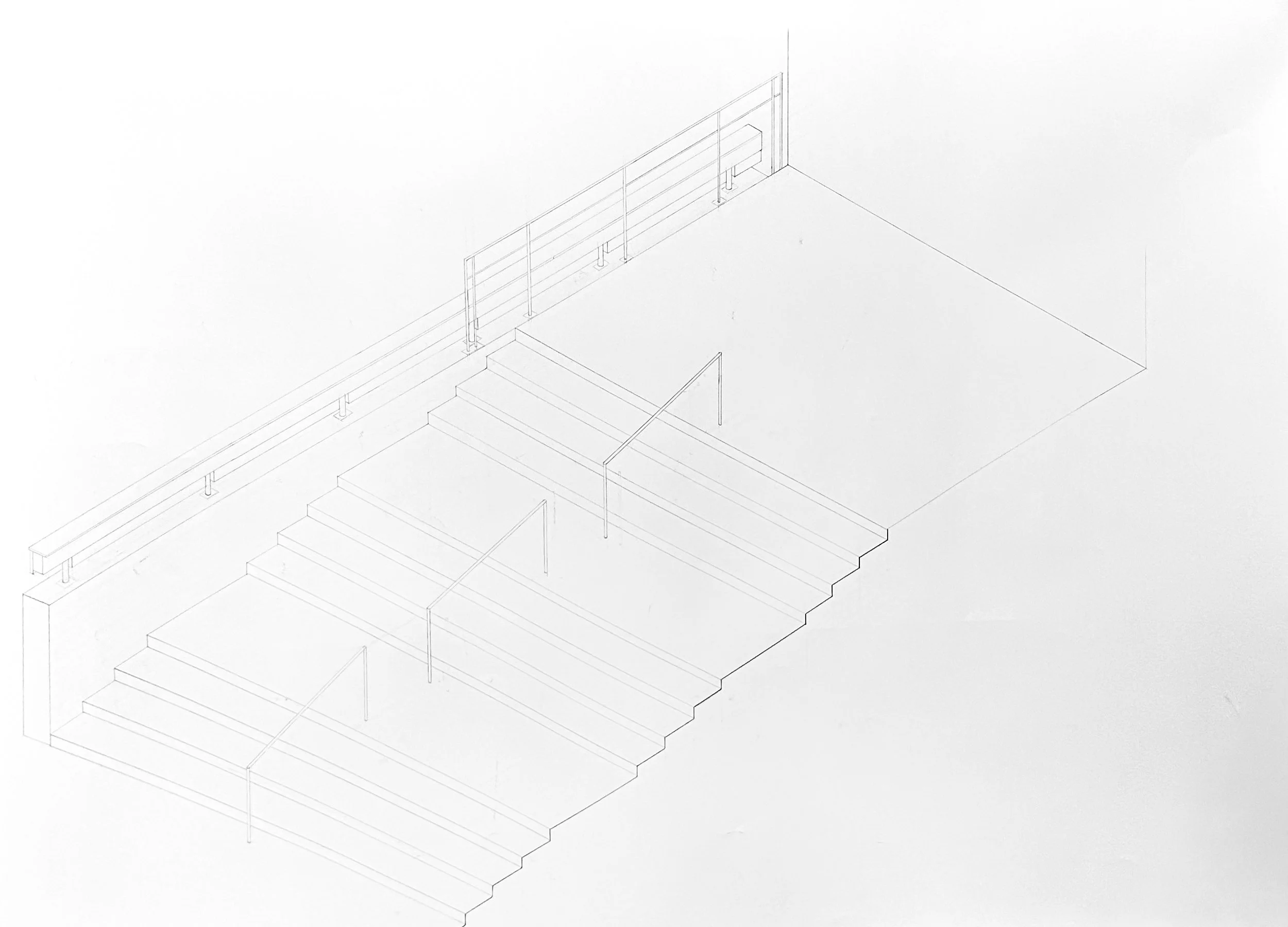 A series of analytical sketches and orthographic drawings of the Yale University Art Gallery main staircase.